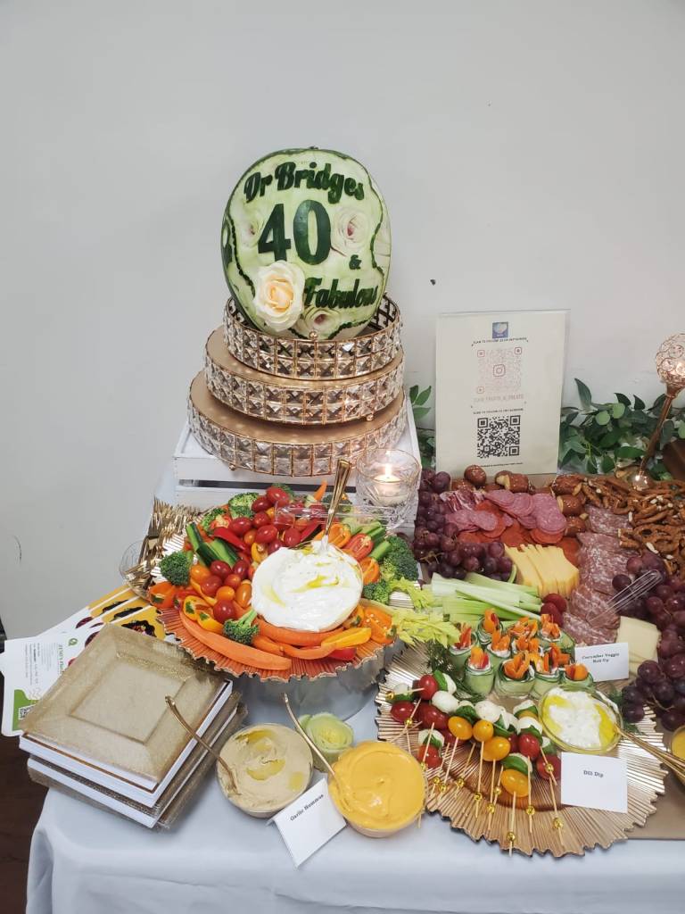 Multidimensional Grazing Style. Includes fruits, veggies, Dips, Specially curated mini bites, nuts, chocolates, mini dessert bites and many more. A la Carte style.